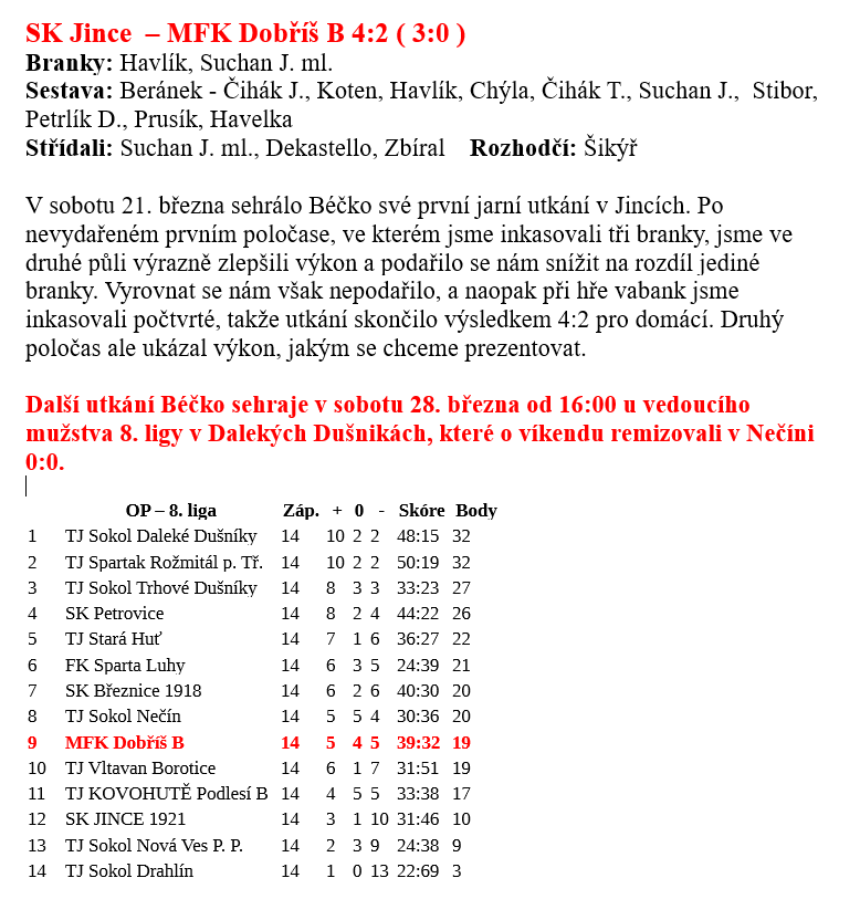 Béčko z Jinců bez bodů