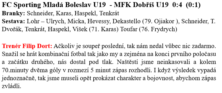 Výsledkový týden mužstev MFK Dobříš