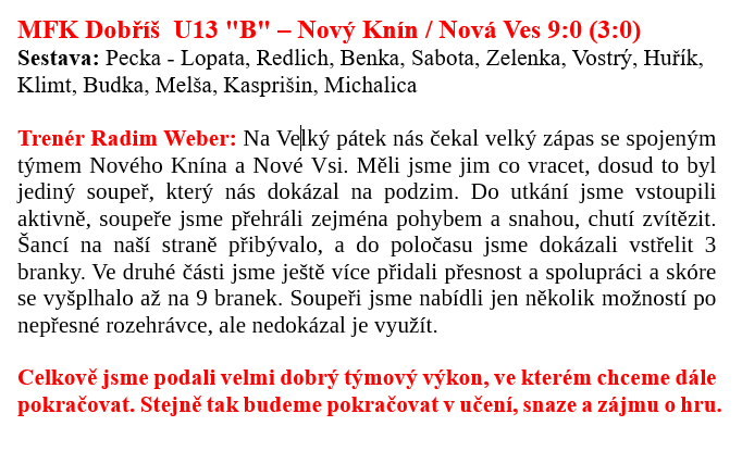 U15 - V přípravě s Novou Vsí vítězně