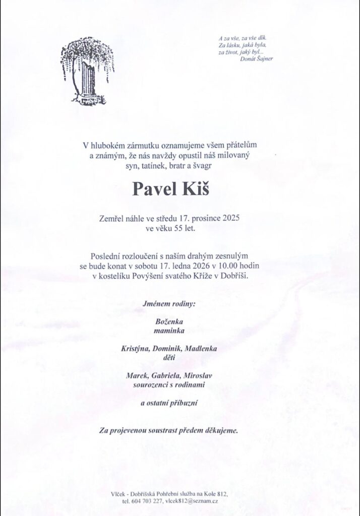 Řady fotbalistů MFK Dobříš, opustil pan Pavel Kiš. Čest jeho památce.