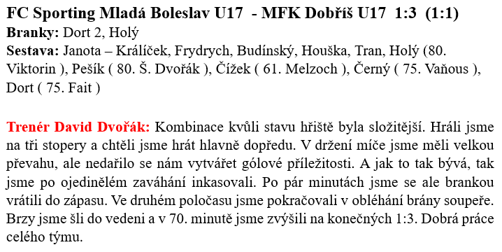 Výsledkový týden mužstev MFK Dobříš