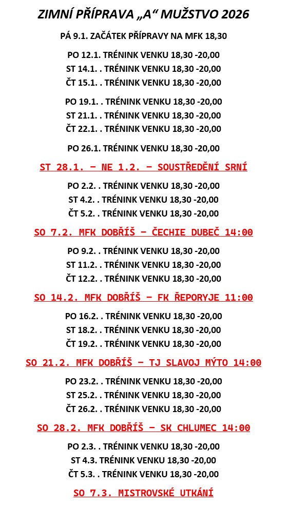 Podzimní rozpis 2025 soutěžních zápasů mužů MFK Dobříš